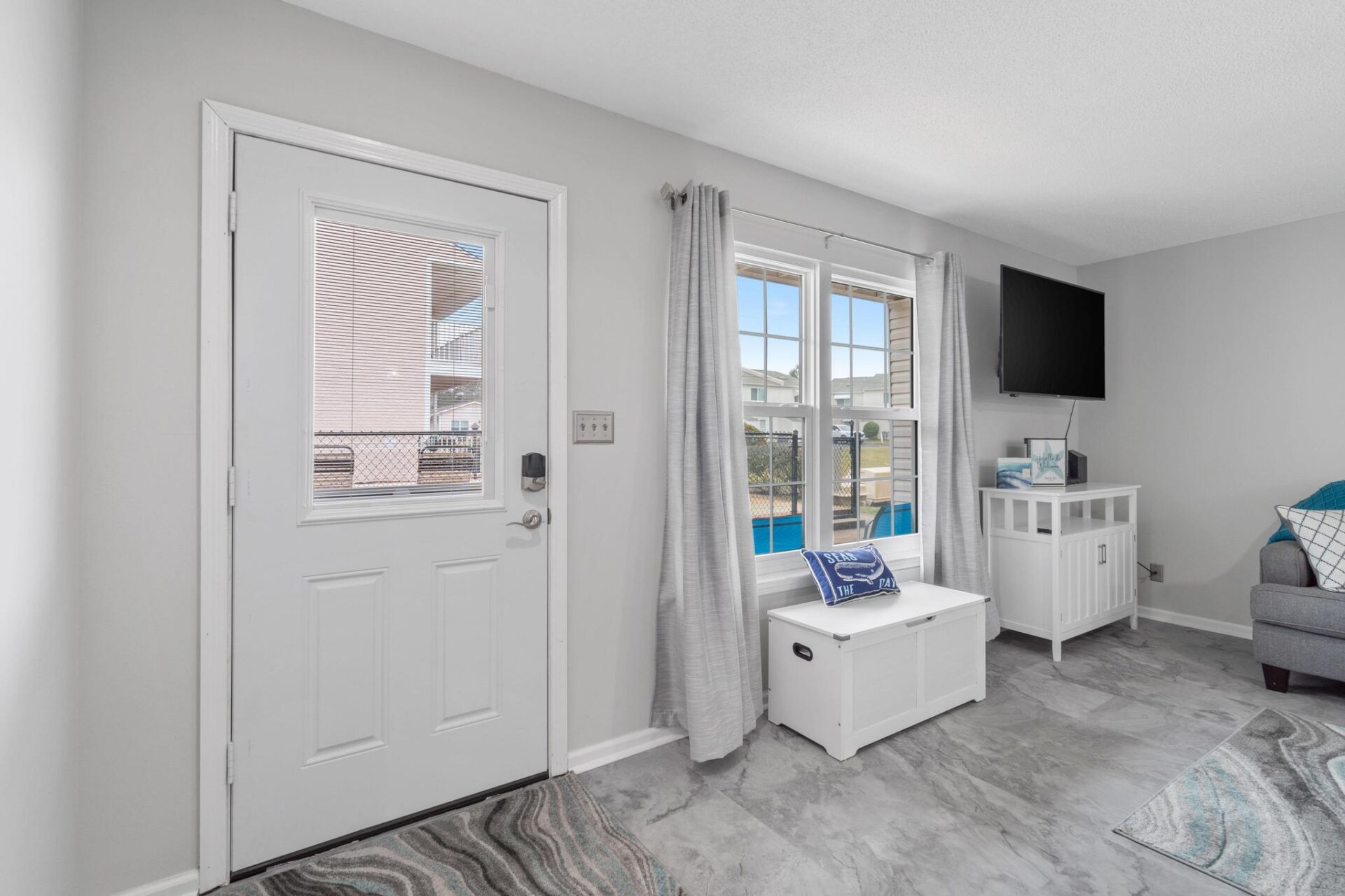 The unit sleeps 6 with a king-sized memory-foam bed and balcony in the master, 2 new queen beds in the spacious second master and a queen sofa sleeper downstairs near the half bath. The home is equipped with LVP flooring, a full-sized washer/dryer, a fully equipped kitchen, free Wi-Fi, smart TV, and 2 dedicated parking spaces. The amenities include two pools (one heated seasonally), a covered poolside gazebo, and a dedicated green space for the kids to play. This 1st-floor townhome gives you the luxury of walking right in with groceries and beach gear without having to lug your belongings up several flights of stairs!