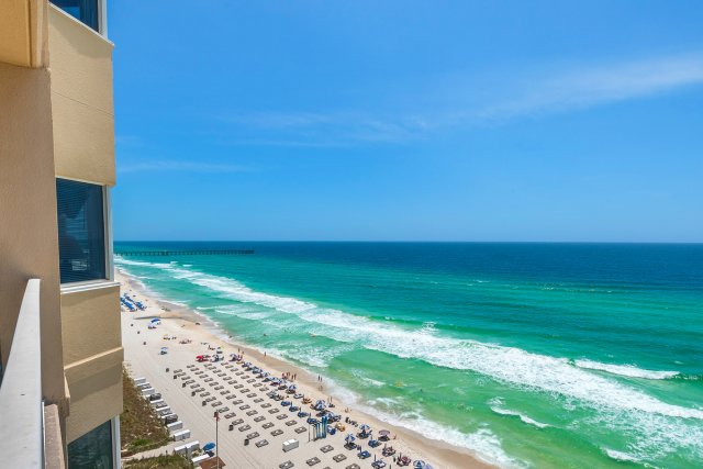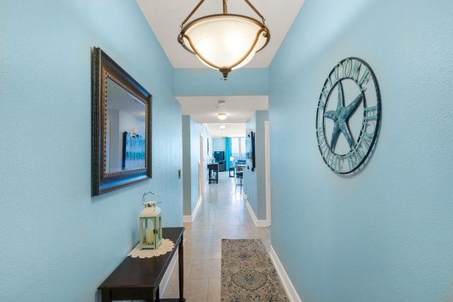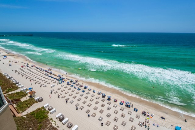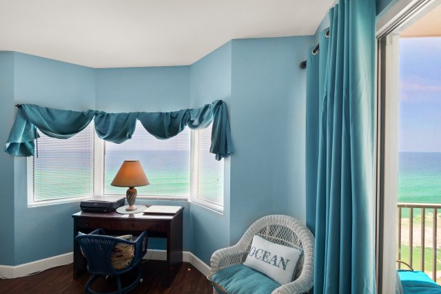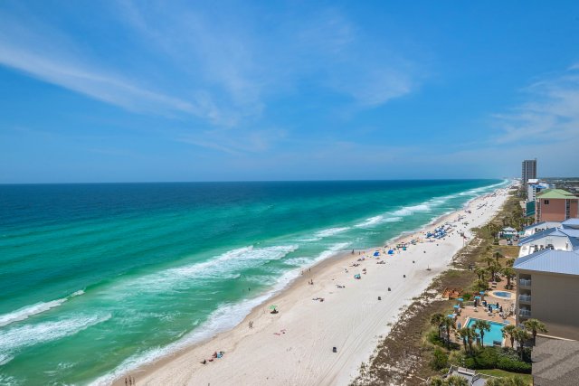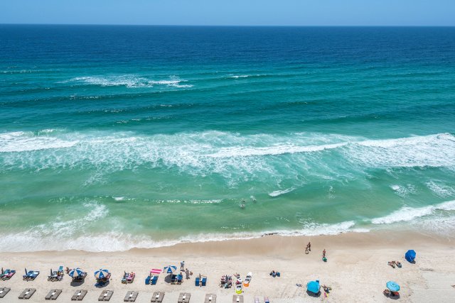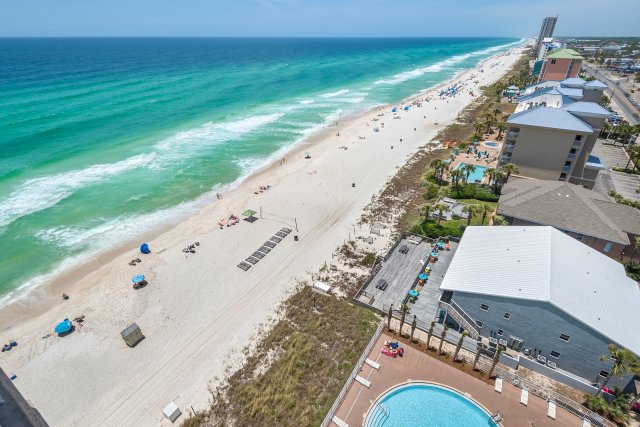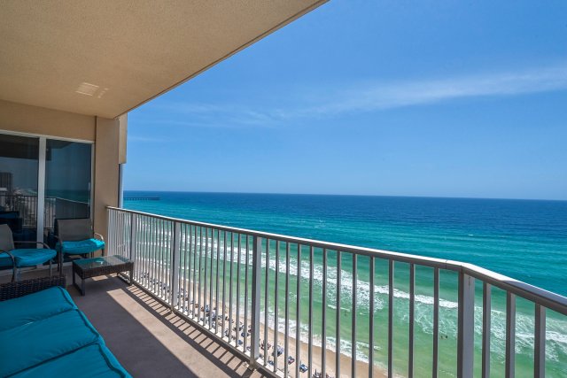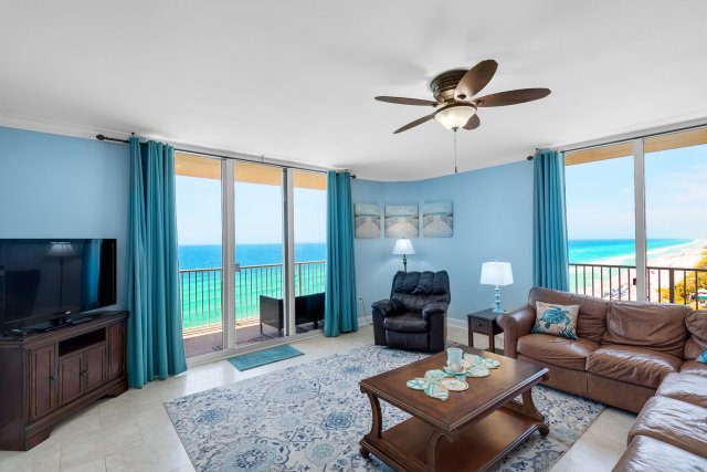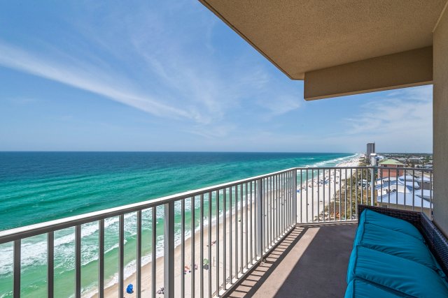 Come enjoy our little piece of paradise! This unit creates a feeling of serenity from the moment you step through the door. Our spacious corner unit has a view of the ocean at almost every turning, giving you a front row view of the beautiful sunsets Panama City Beach has to offer. Enjoy the gentle breeze while drinking a cold beverage and relaxing on our wrap around balcony that lets you gaze the beach and shoreline as far as you can see!