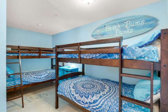 The fourth bedroom is a bunk room has two sets of bunk beds. (2 separate with four beds in all)