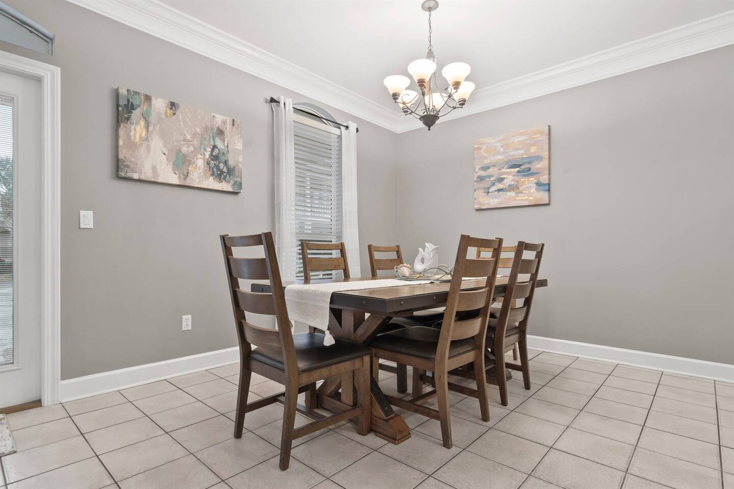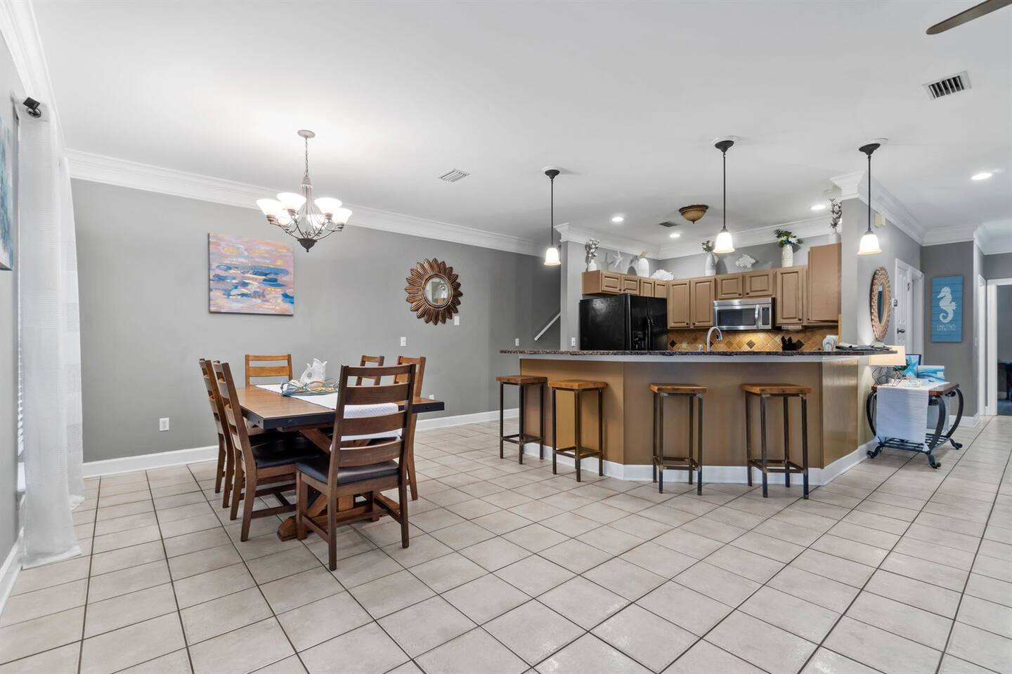 - Dining table that can seat up to 6 plus breakfast bar for additional seating