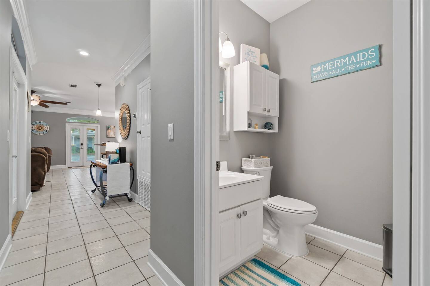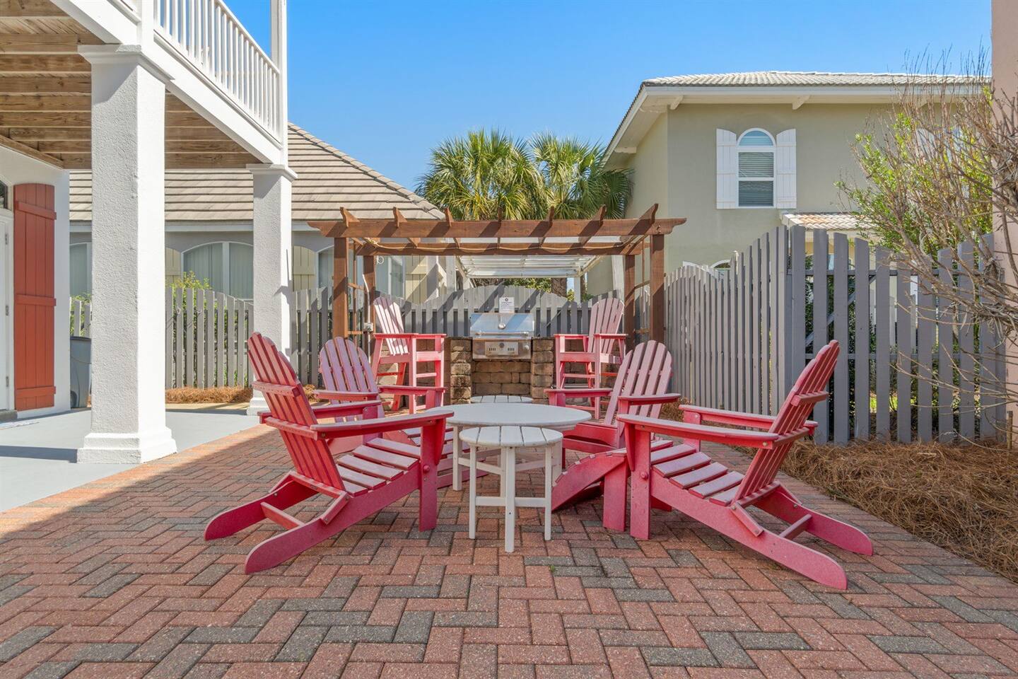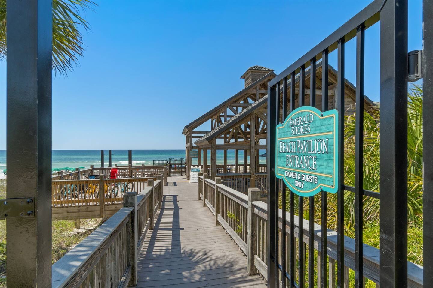 Welcome to Seaside Bliss, our newly updated beach house vacation rental located in the exclusive Emerald Shores community in Miramar Beach, Florida. Our gated resort-style community provides a safe and luxurious vacation experience, with access to a private beach complete with a pavilion, bathrooms, and a seasonal beach bar. Soak up the sun and enjoy crystal clear waters of the Gulf of Mexico or take a dip in one of our two pools, surrounded by comfortable lounge chairs. Play a game of tennis, volleyball, or basketball all within the community, or take advantage of our seasonal tram that can take you straight to the beach. Golf Carts are allowed in the community and on old 98. There are local companies that will drop them off and pick them up for you.