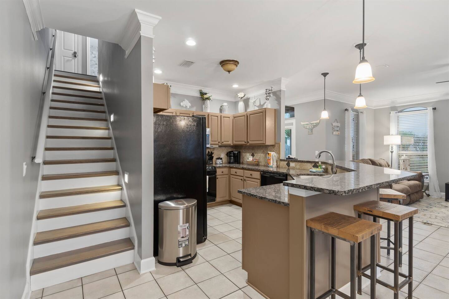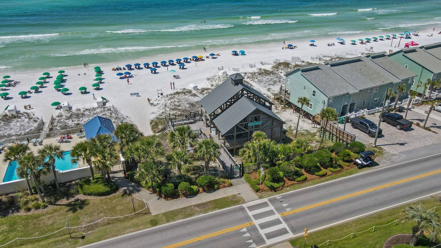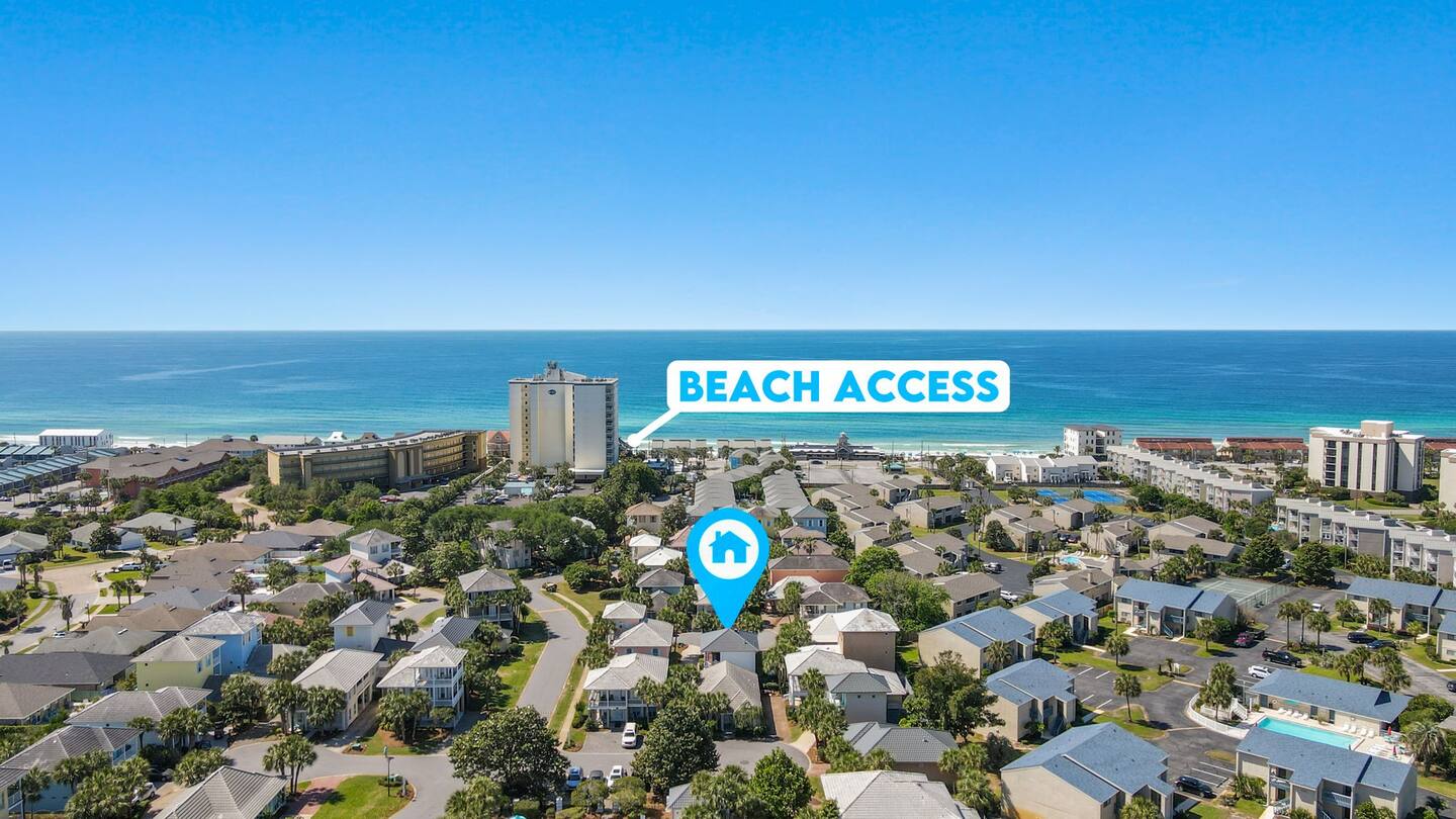 Located within walking distance to many shops and restaurants, including Kenny D’s, a fun spot for food and karaoke, and Captain Dave’s, known for its amazing food, water-view and elegant settings. Seaside Bliss is the perfect spot to enjoy local cuisine and indulge in some retail therapy. But why stop there? Destin, known as the World’s Luckiest Fishing Village, offers a plethora of dining, shopping, golf, and water sports opportunities. Kids will love Big Kahuna Waterpark and a Dolphin cruise, while adults can enjoy world-class fishing and golf.