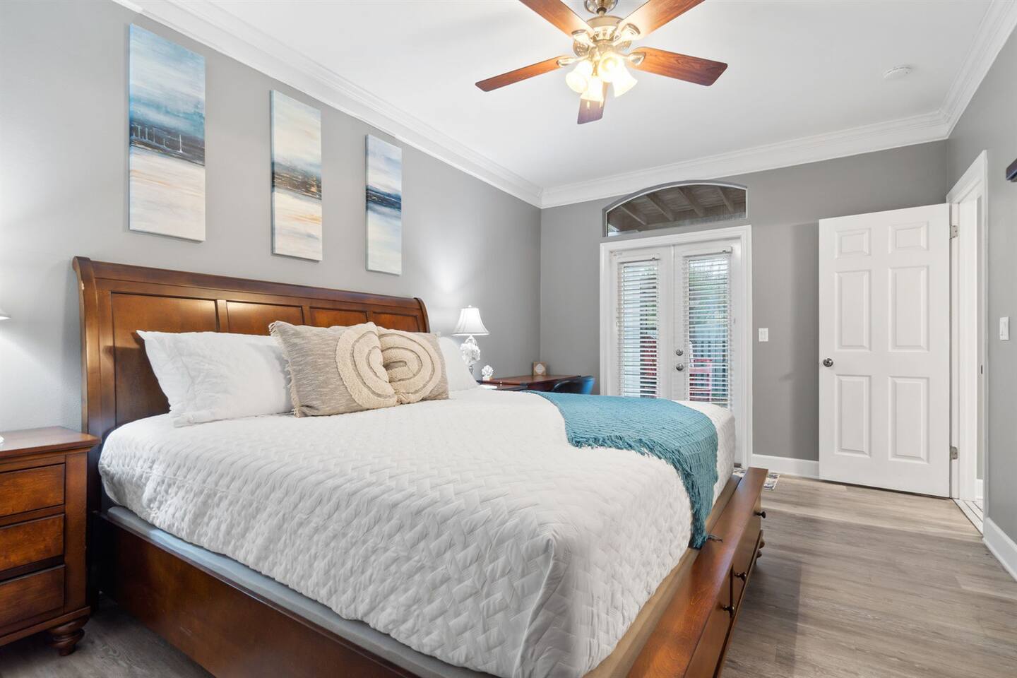 Inside your vacation rental, enjoy a beautifully decorated living space with plenty of natural light and all the modern amenities you could need for a comfortable stay. Our property features spacious bedrooms that accommodate up to 10 guests, a fully equipped kitchen, and comfortable living space. Beach chairs, an umbrella, pool and sand toys are available for you to use at your leisure.