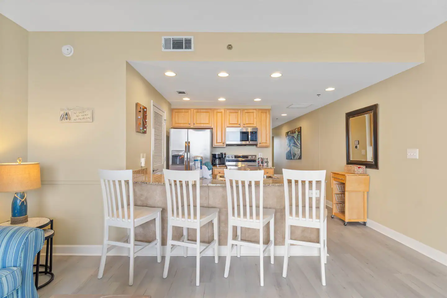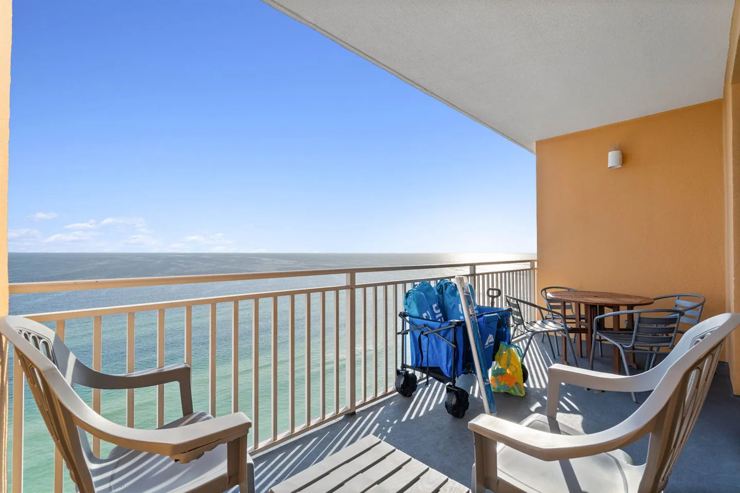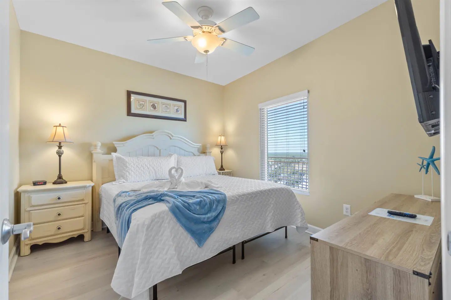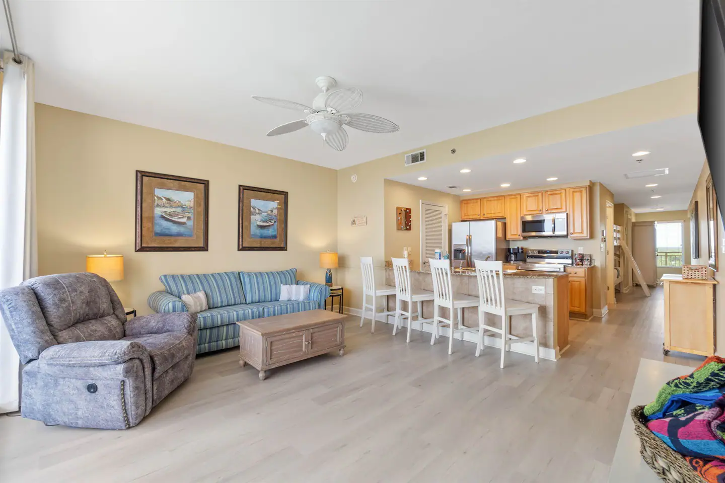 As you step into your luxurious retreat, you’ll find everything you need for a relaxing stay. The condo boasts a fully stocked kitchen, so you can whip up delicious meals and snacks whenever you please. No need to worry about packing bulky beach gear or towels – we’ve got you covered! Plus, we provide a starter pack of toiletries to ensure your comfort from the moment you arrive.
